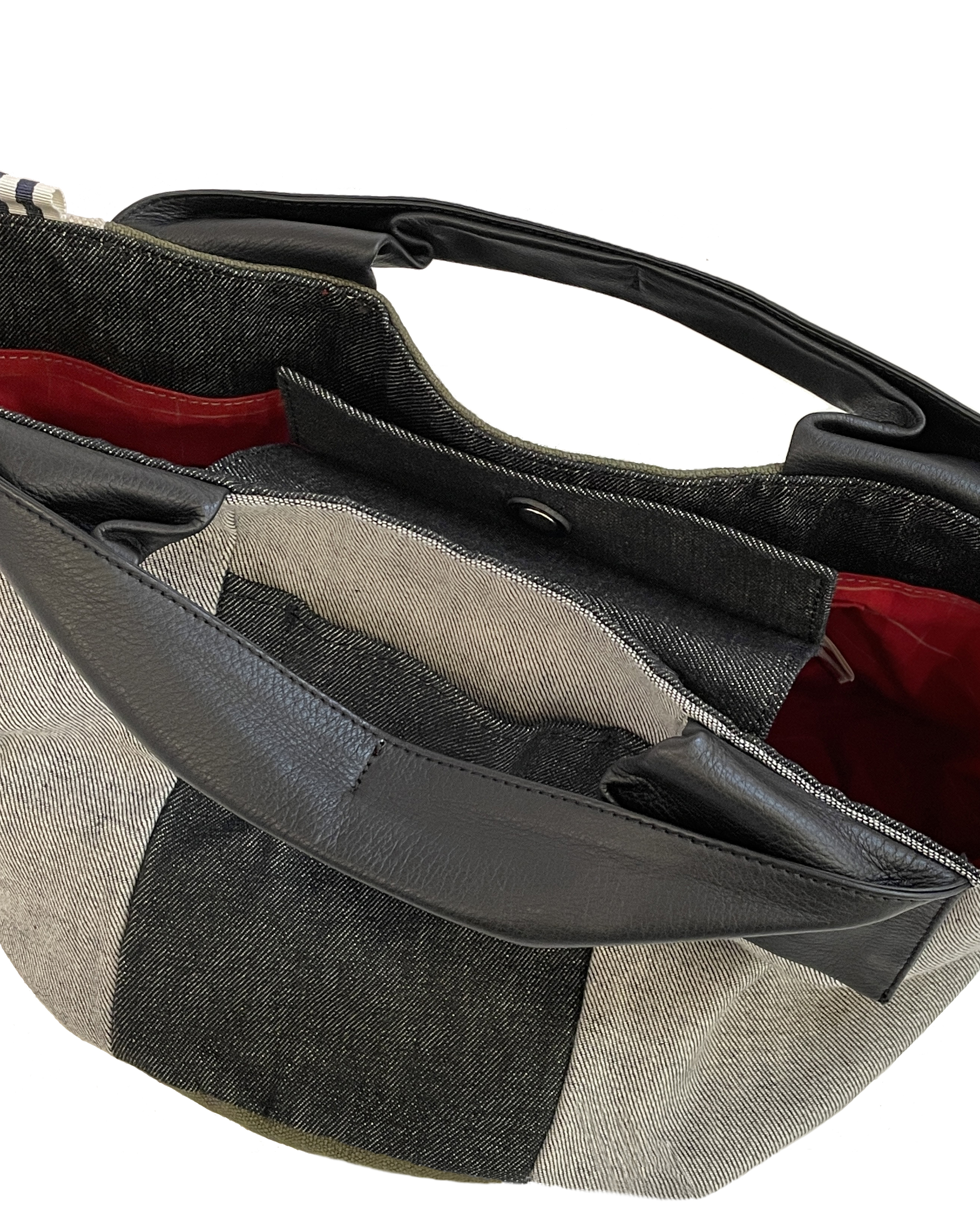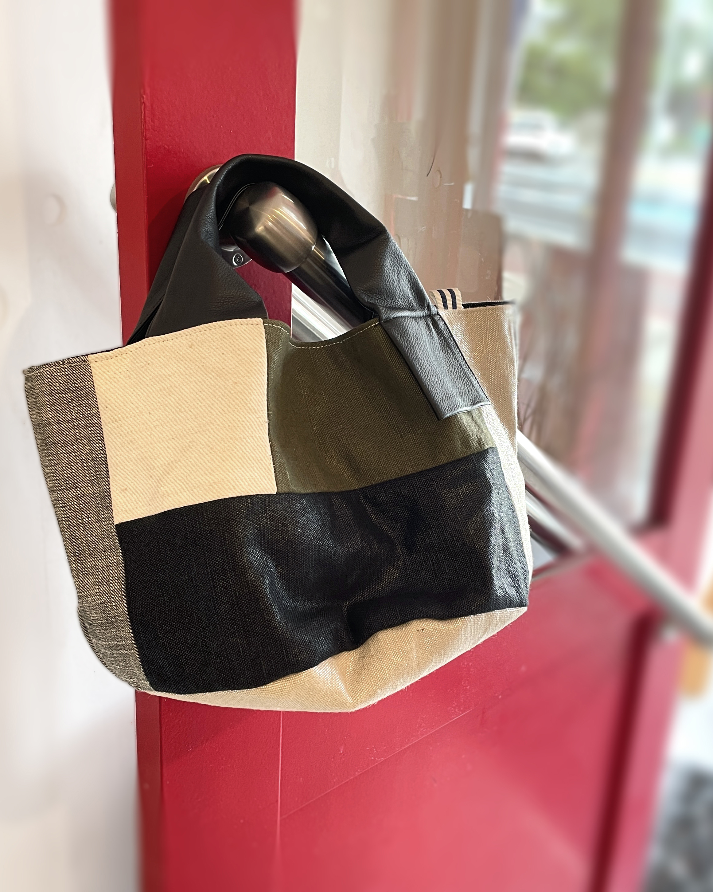 色と素材が軽やかに溶け合う【T.Aデザイン】らしいパッチワーク。異素材が織りなすバランスが心地よく、やさしい艶感がカジュアルスタイルを品よく仕上げます。