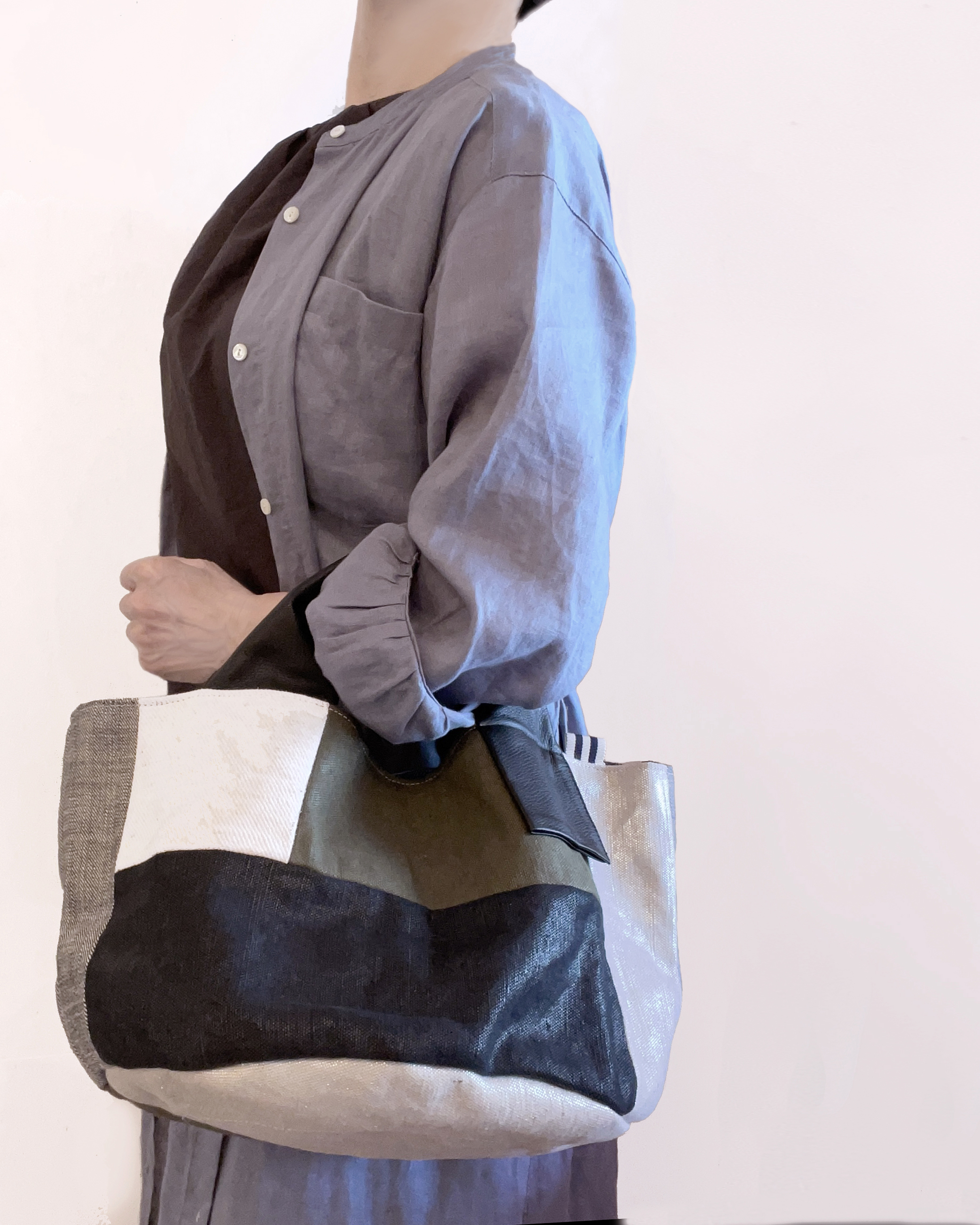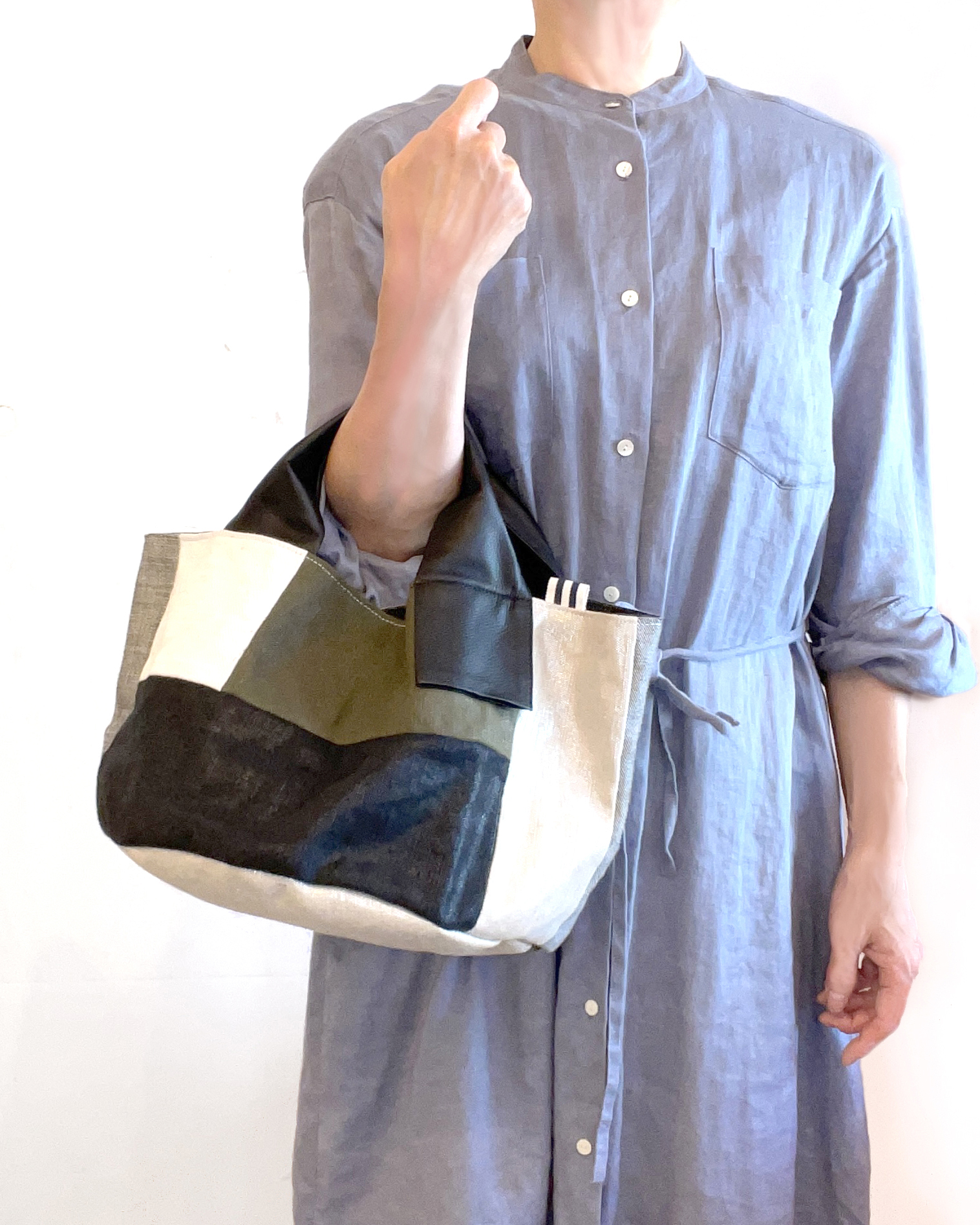 素 材:本体は5種類の綿麻ベースの素材を組み合わせたパッチワーク。
