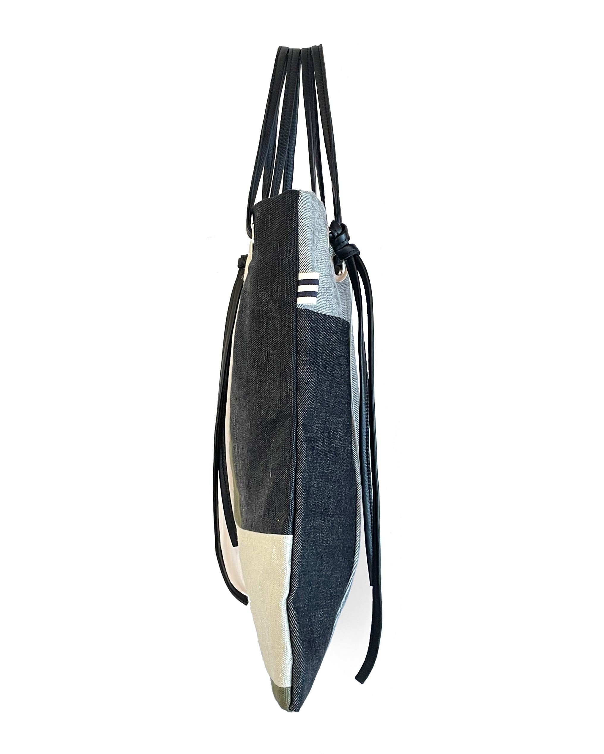 色と素材が軽やかに溶け合う【T.Aデザイン】らしいパッチワーク。異素材が織りなすバランスが心地よく、やさしい艶感がカジュアルスタイルを品よく仕上げます。