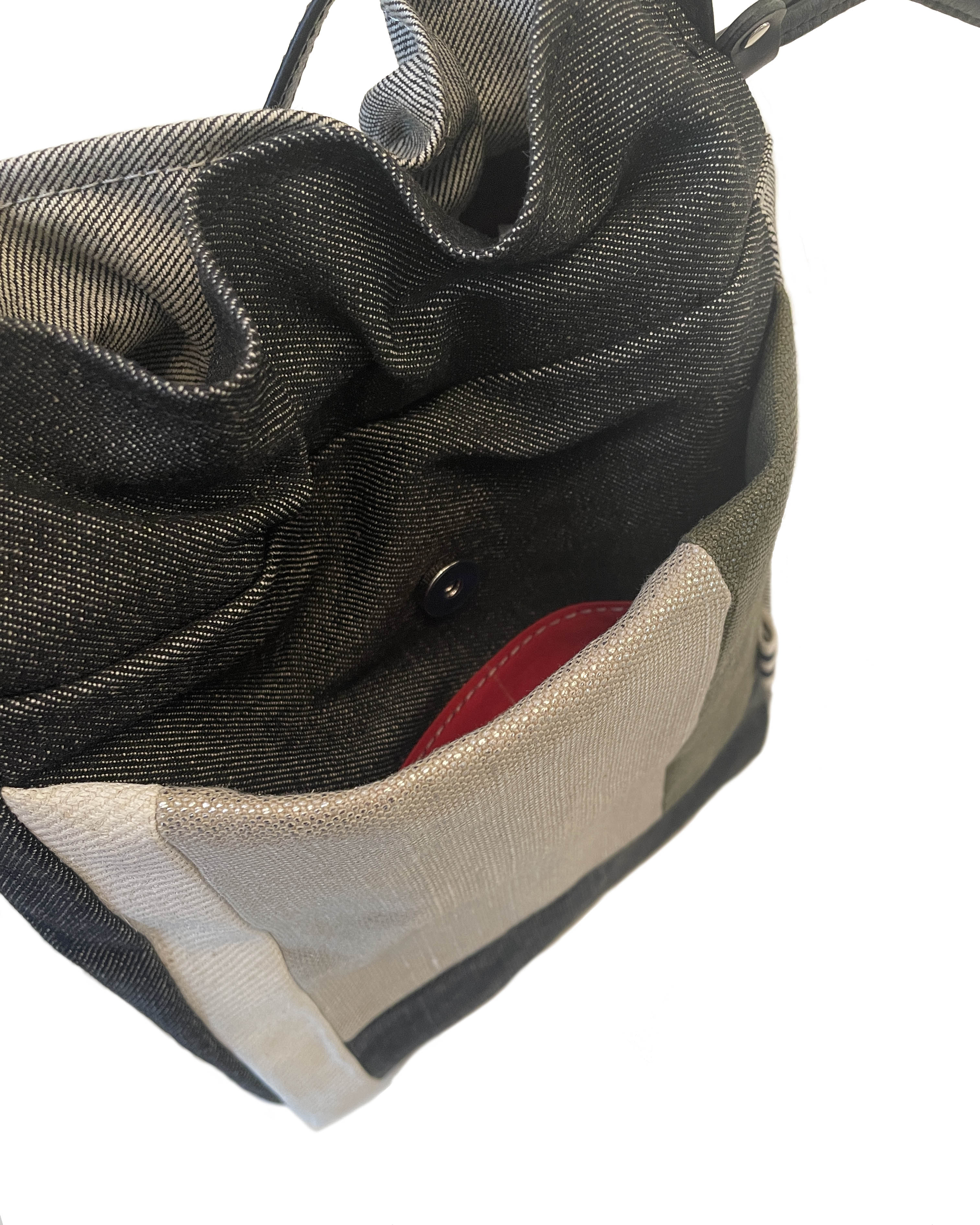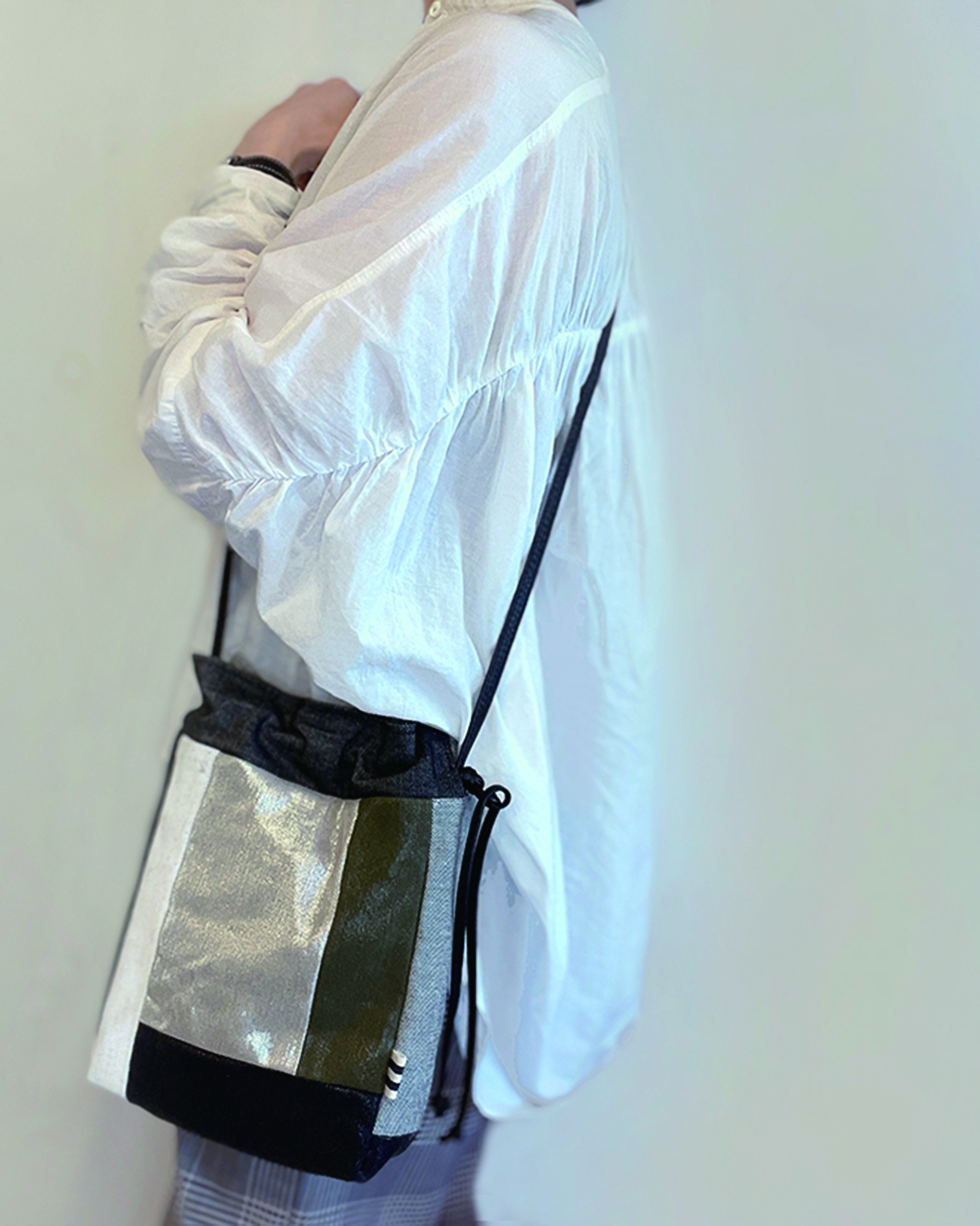 素 材:本体は5種類の綿麻ベースの素材を組み合わせたパッチワーク。