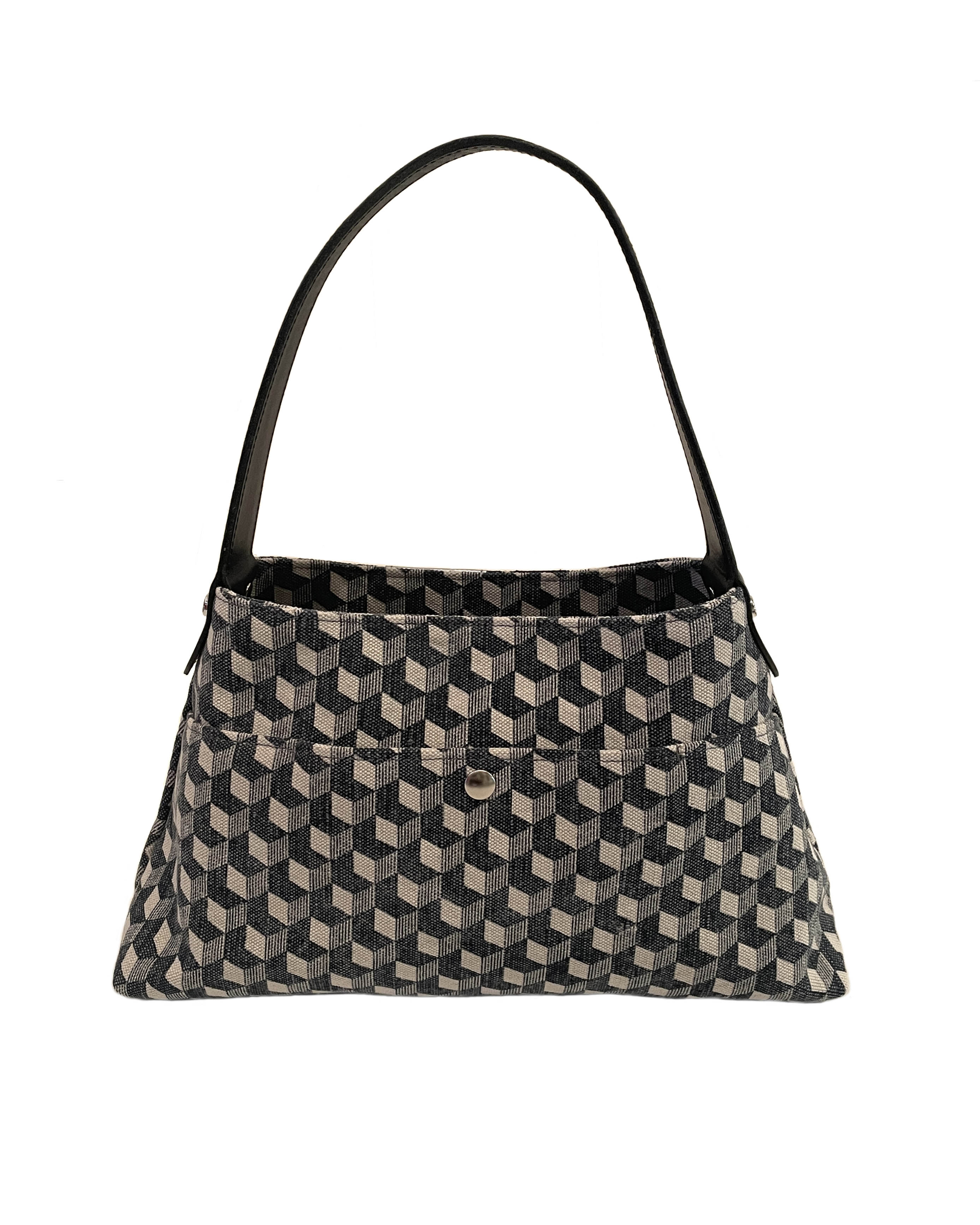 末広がりの美しい台形フォルムが、大人のカジュアルスタイルを上品に演出します。肩掛けもできる長めのハンドルで、持ち運びもスマートに。毎日手に取りたくなる絶妙なサイズ感は、日々のお出かけの良きパートナーになります。