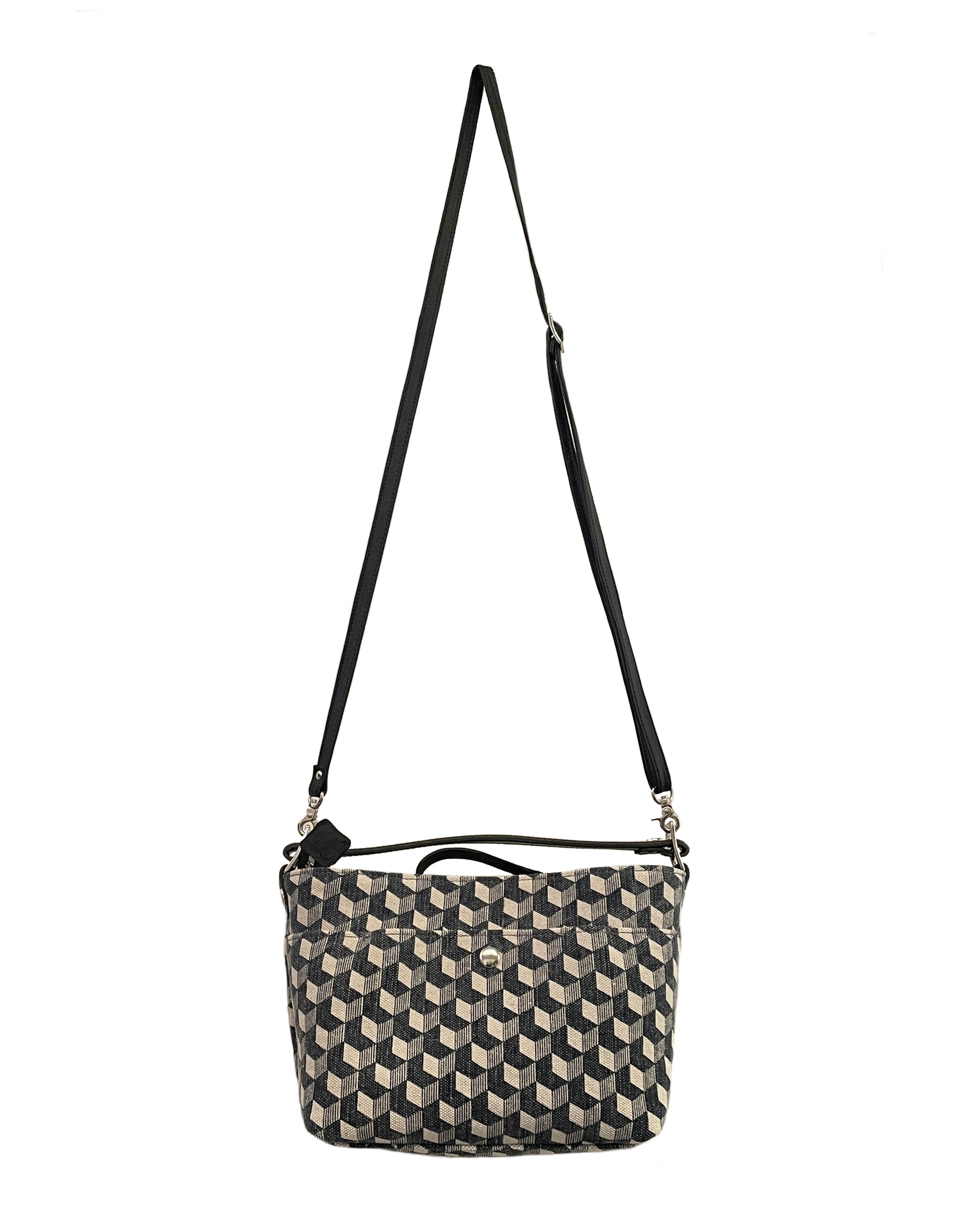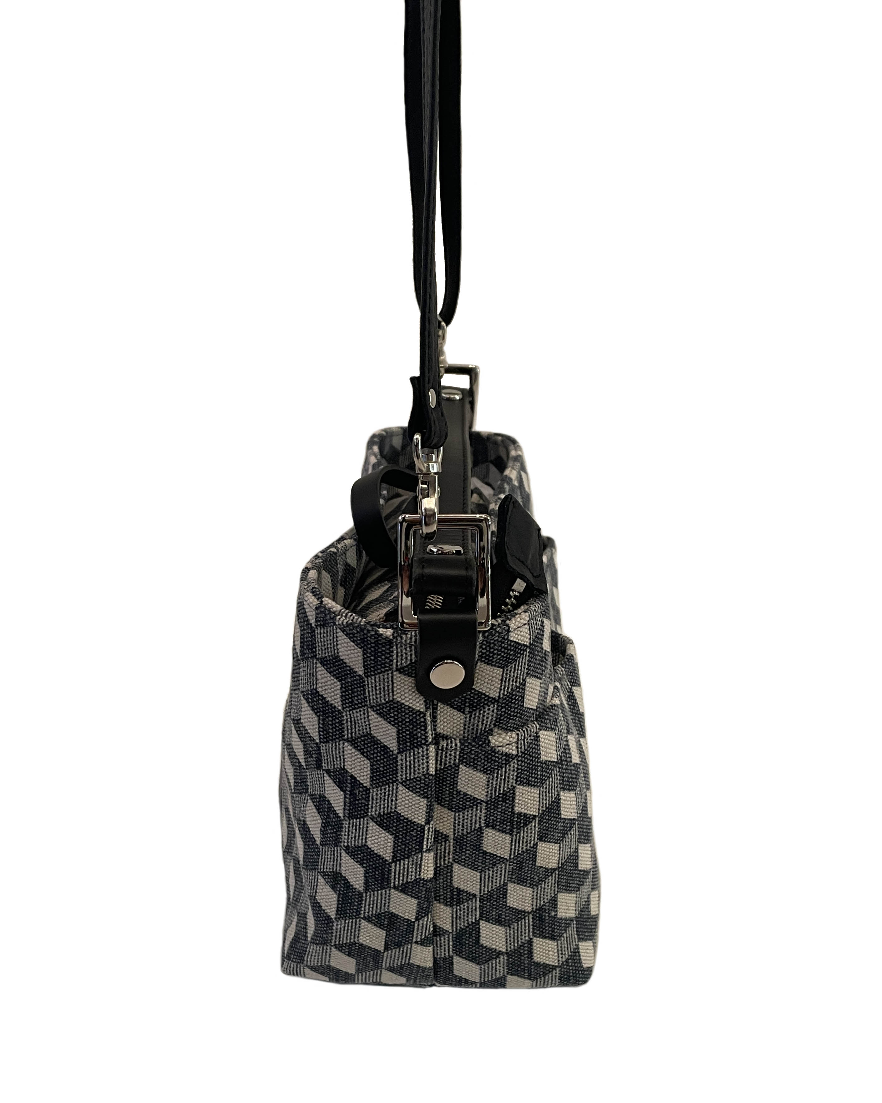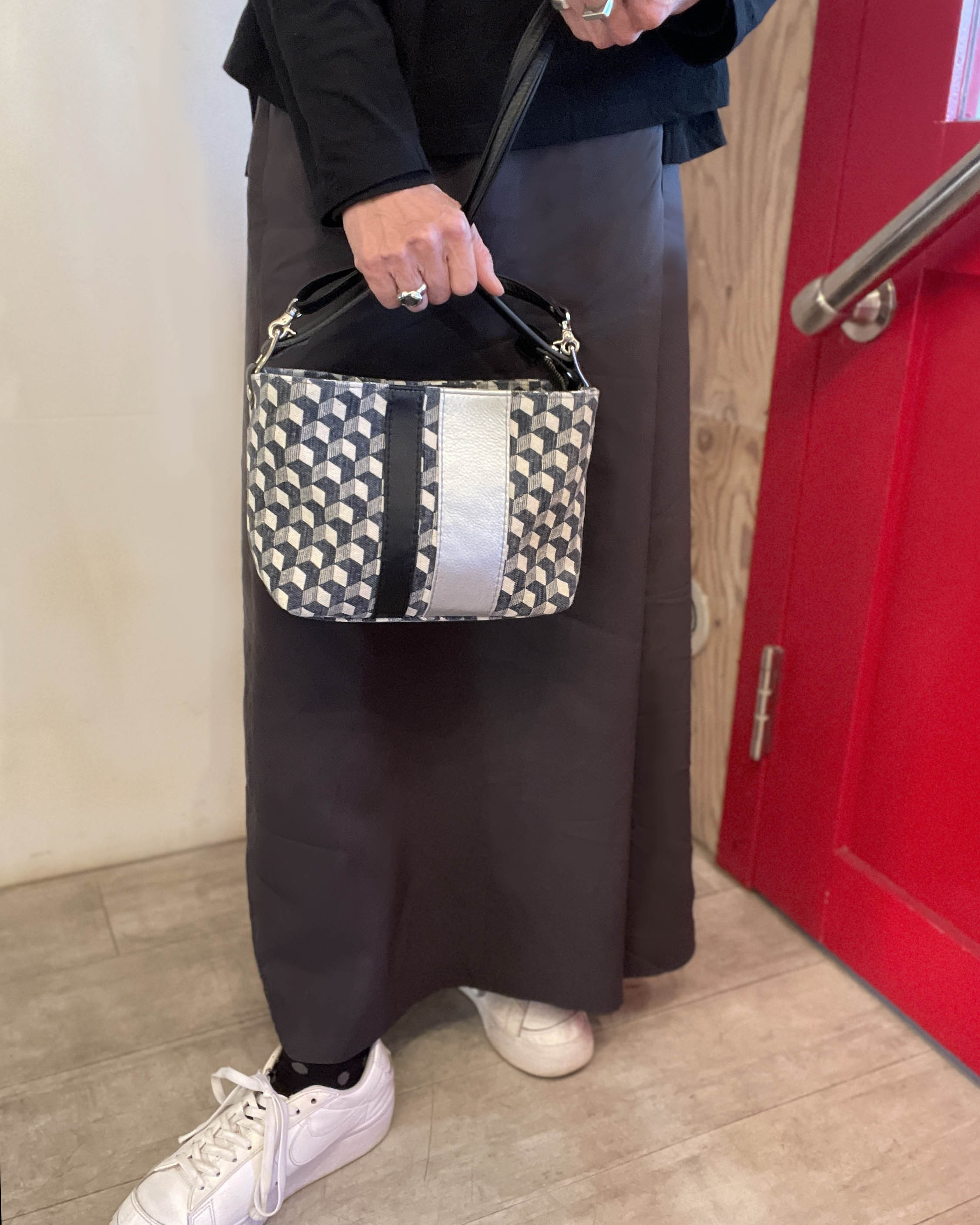 ショルダー紐が取り外し可能な2wayタイプです。コンパクトな見た目ながら、しっかりとしたマチがあるため収納力は抜群。カジュアルさと「きちんと感」を兼ね備えており、お食事会から旅行先での斜め掛けスタイルまで、幅広いシーンで活躍します。
